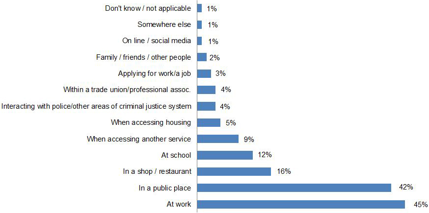 [23] Respondents were shown a list of possible types of discrimination and asked to indicate which, if any, they have personally experienced in the past five years (multiple mentions were permitted).